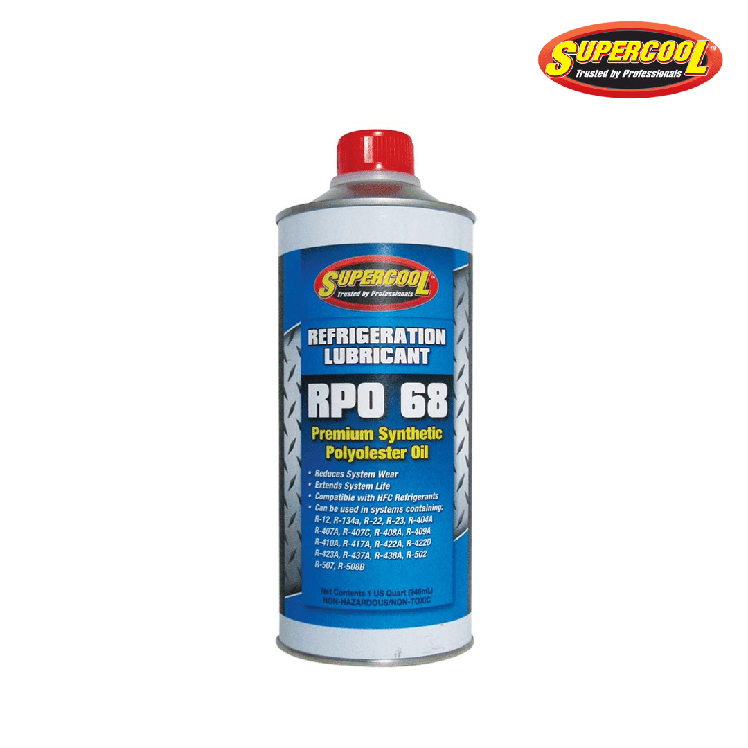 El Aceite POE 68 de Supercool es un lubricante sintético de polioléster (POE) diseñado para sistemas de refrigeración y aire acondicionado que utilizan refrigerantes HFC, HCFC y CFC. Ofrece una excelente lubricación, estabilidad térmica y compatibilidad con una amplia gama de refrigerantes.