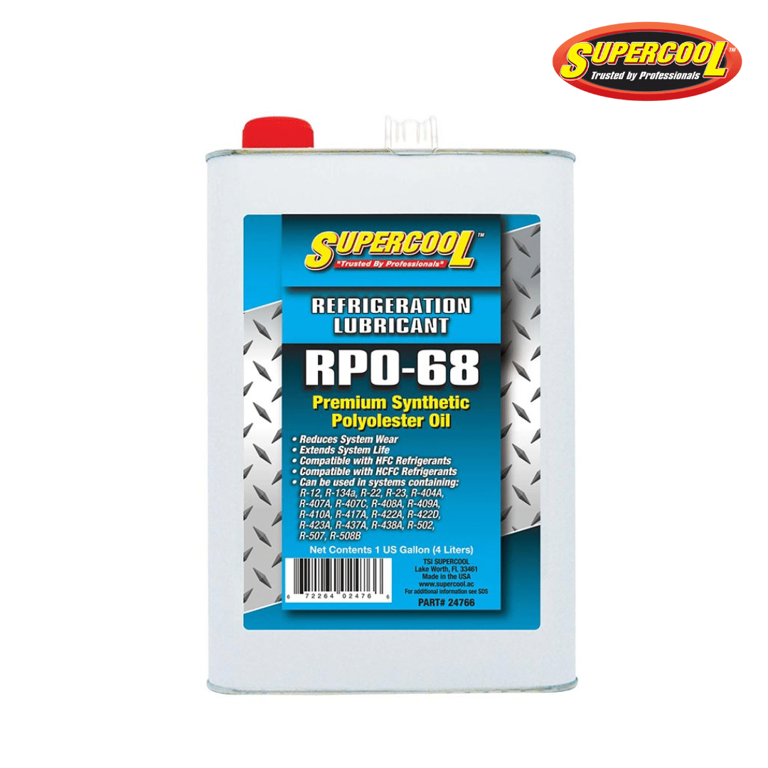 El Aceite POE 68 de Supercool es un lubricante sintético de polioléster (POE) diseñado para sistemas de refrigeración y aire acondicionado que utilizan refrigerantes HFC, HCFC y CFC. Ofrece una excelente lubricación, estabilidad térmica y compatibilidad con una amplia gama de refrigerantes.