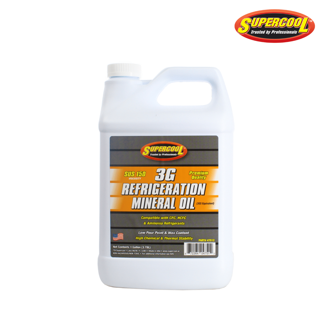 El Aceite Mineral 3G de Supercool es un lubricante de alta calidad, formulado para sistemas de refrigeración y aire acondicionado que utilizan refrigerantes CFC, HCFC y amoníaco. Su viscosidad de 150 SUS (equivalente a 3GS) y su baja concentración de cera lo hacen ideal para aplicaciones que requieren un rendimiento confiable y duradero.