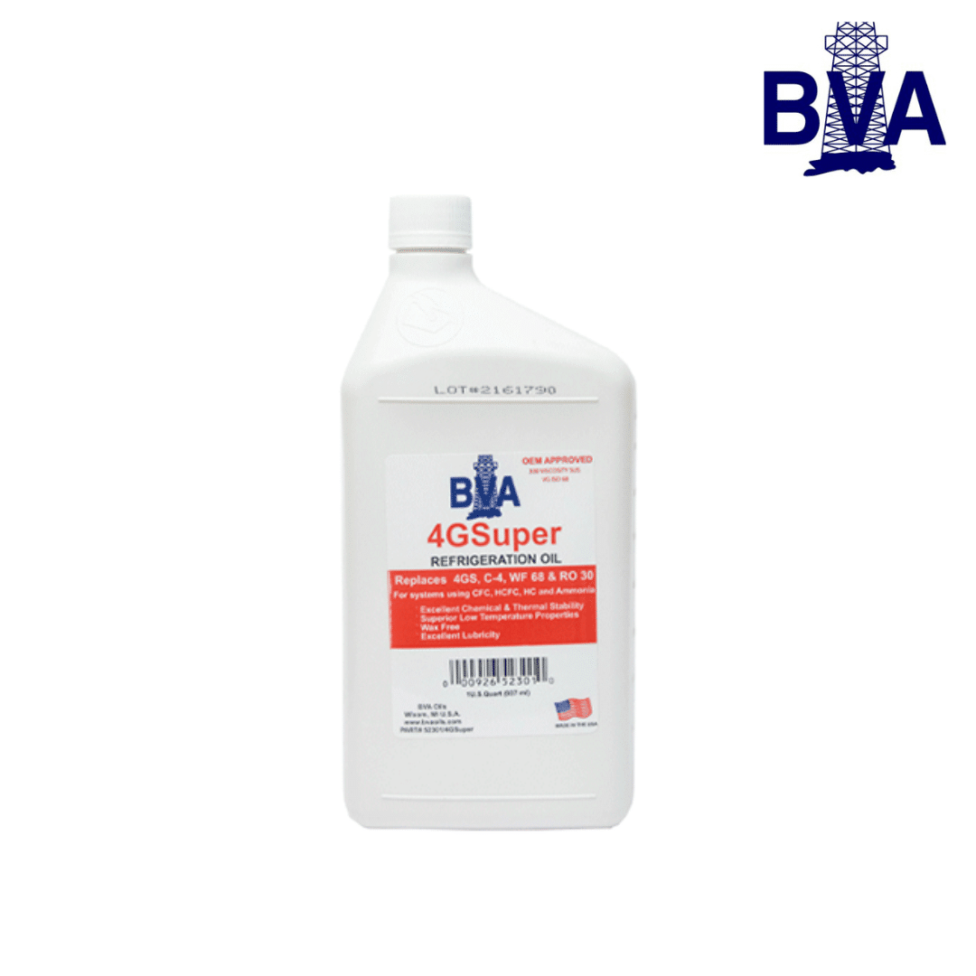 El Aceite Mineral 4GS (4G Super) de BVA Oils es un lubricante de alta calidad, formulado para sistemas de refrigeración y aire acondicionado que utilizan refrigerantes CFC, HCFC, HC y amoníaco. Su excelente estabilidad térmica y química garantiza un rendimiento óptimo en diversas condiciones de operación.