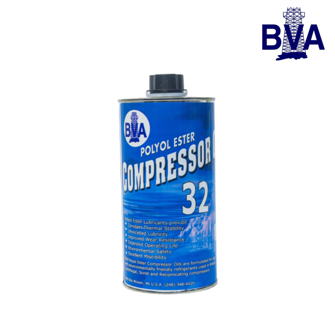 El Aceite POE 32 de BVA Oils es un lubricante sintético de alta calidad, formulado para ofrecer una excelente lubricación y protección en sistemas de refrigeración y aire acondicionado que utilizan refrigerantes HFC, HCFC y CFC. Su formulación avanzada garantiza una operación eficiente y prolonga la vida útil del compresor.