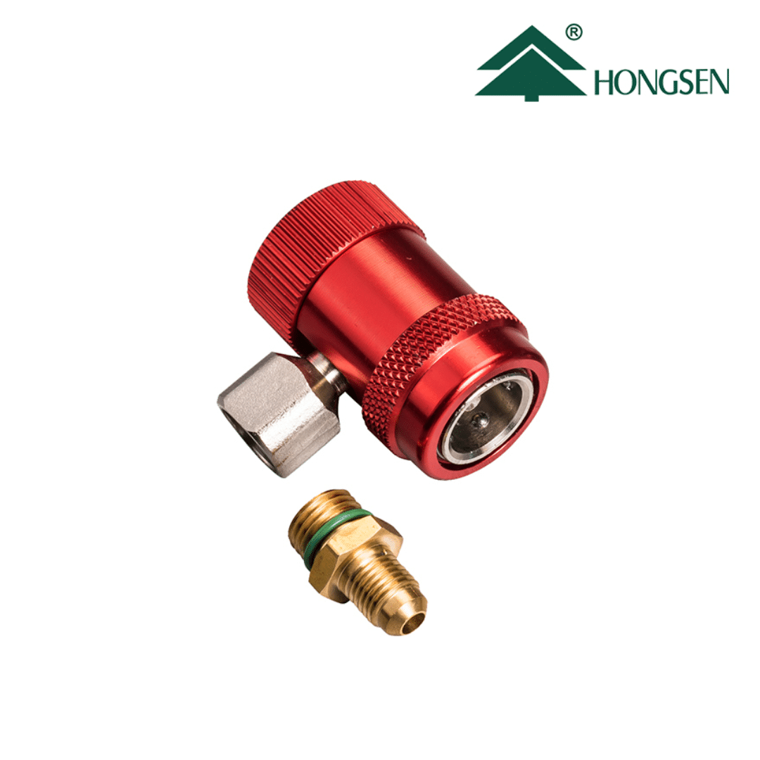 Acople rápido de alta presión para sistemas de A/C automotriz con gas R134a, fabricado por HONGSEN. Permite conexiones seguras, sin fugas y de rápida ejecución en el puerto de alta.