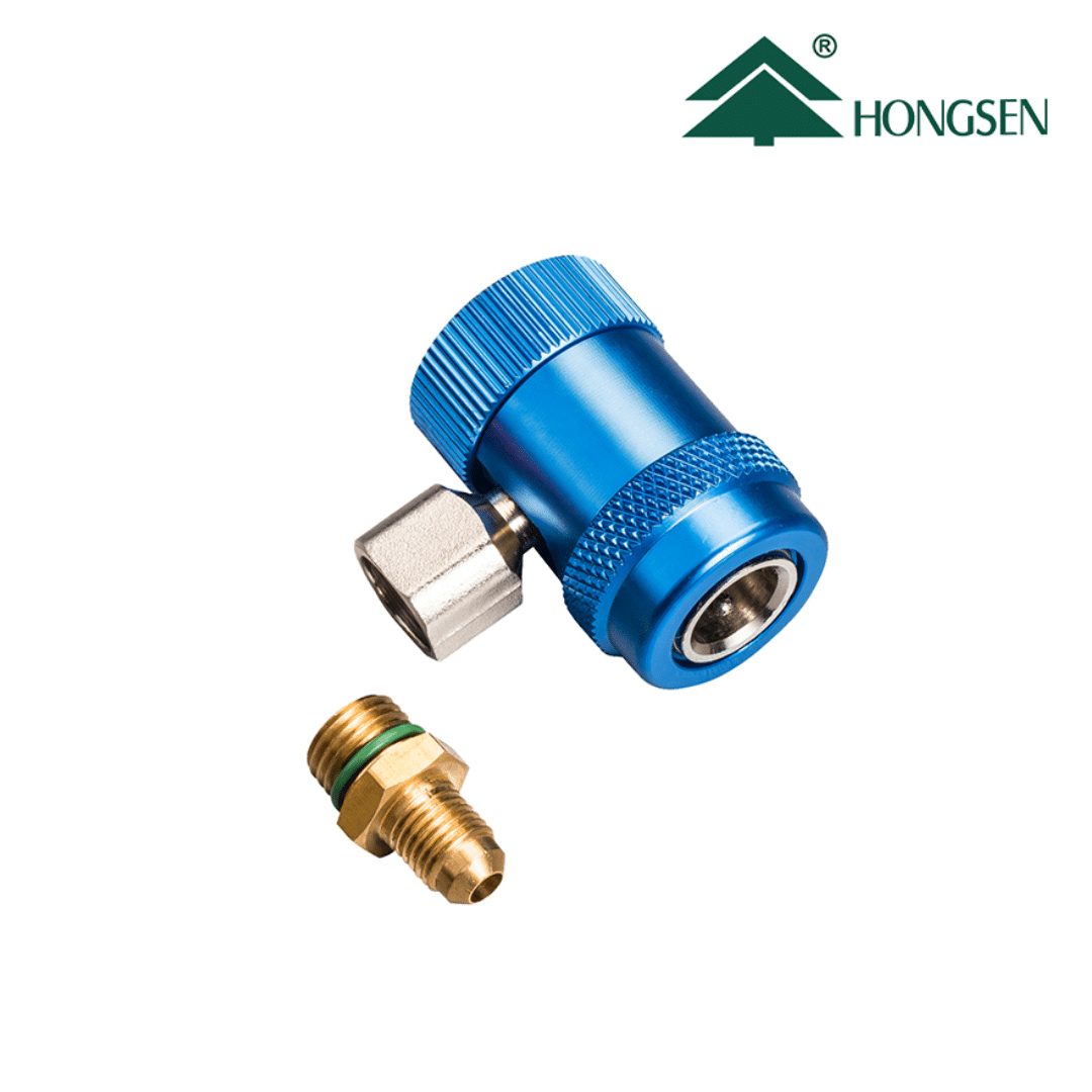 Acople rápido de baja presión diseñado para sistemas de aire acondicionado automotriz que utilizan gas refrigerante R134a. Fabricado por HONGSEN, garantiza conexión segura, rápida y sin fugas.