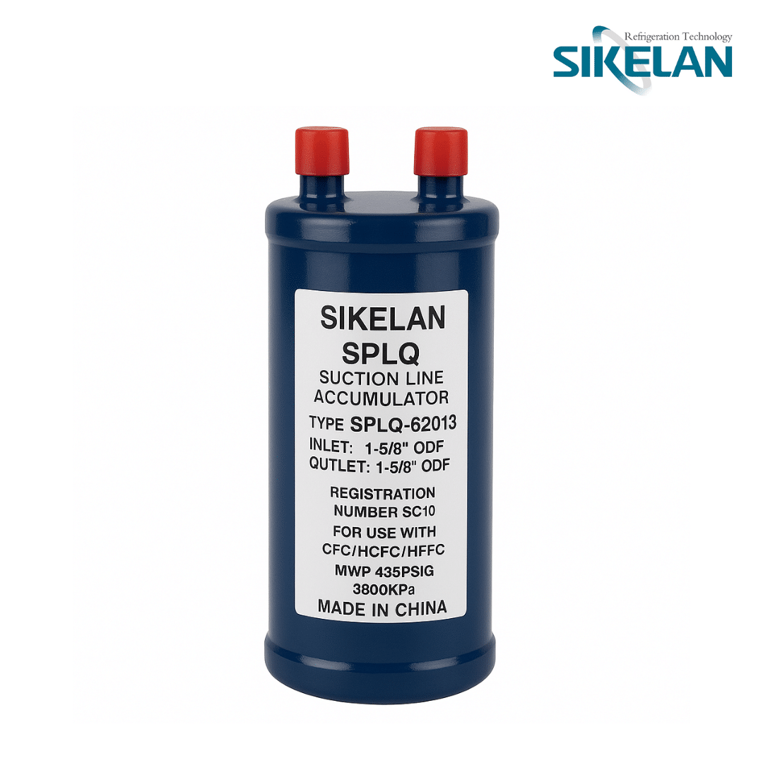 El Acumulador de Succión 1 5/8″ ODF SPLQ-62013 – SIKELAN está diseñado para evitar el retorno de refrigerante líquido al compresor, protegiéndolo de daños y mejorando la eficiencia general del sistema. Fabricado con materiales de alta calidad y revestimiento anticorrosivo, garantiza resistencia, durabilidad y desempeño confiable en aplicaciones de refrigeración y aire acondicionado.