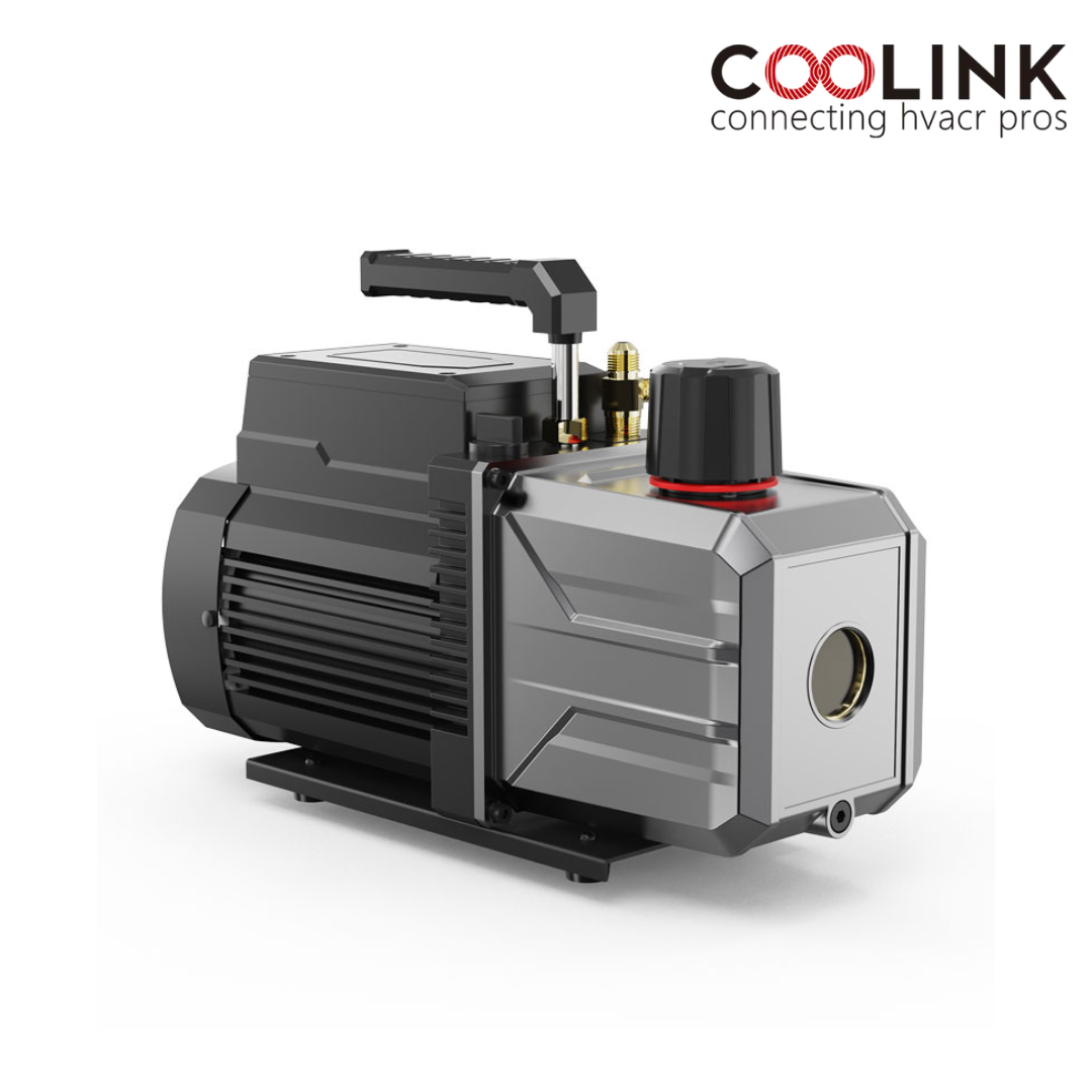 Bomba de vacío COOLINK de 1/4 HP con capacidad de 3.5 CFM, diseñada para la evacuación rápida y eficiente de sistemas de refrigeración y aire acondicionado. Permite eliminar humedad y gases no condensables, asegurando un desempeño óptimo y prolongando la vida útil del sistema. Ideal para instalaciones, mantenimiento y trabajos de servicio técnico profesional.
