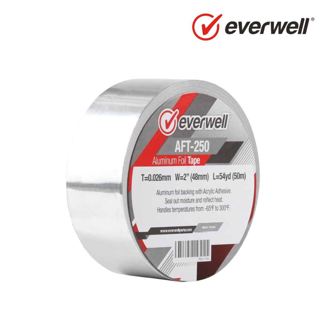 La Cinta de Aluminio AFT-250 de Everwell es una solución profesional para sellado y aislamiento en sistemas HVAC, refrigeración y aplicaciones industriales. Con un ancho de 2 pulgadas y una longitud de 50 yardas, esta cinta ofrece una excelente resistencia térmica y adhesión duradera.