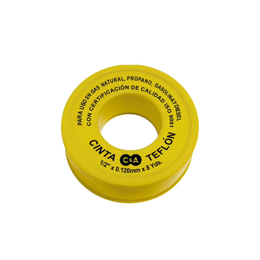 Cinta teflon C&A de 1/2", diseñada para el sellado hermético de roscas en instalaciones de agua, aire y otros fluidos. Su espesor de 0.120 mm garantiza un sellado eficiente, evitando fugas y asegurando una instalación limpia, segura y duradera en aplicaciones domésticas, comerciales e industriales.