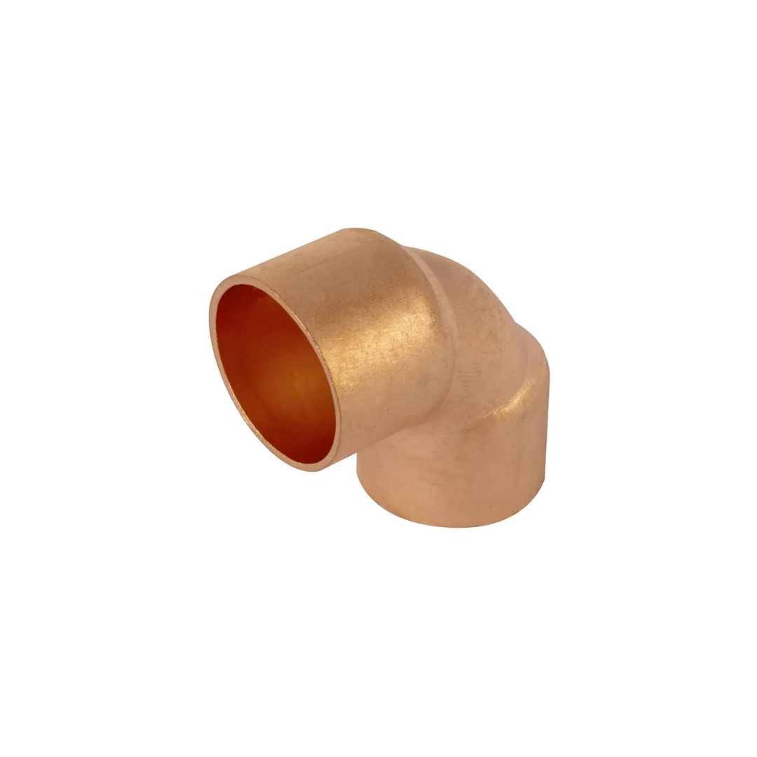 Codo de cobre soldable de 90° y 1 1/8", diseñado para realizar cambios de dirección en sistemas de tuberías de cobre. Ideal para instalaciones de refrigeración, aire acondicionado, gas y sistemas hidráulicos, garantiza una conexión segura, resistente y duradera mediante soldadura.