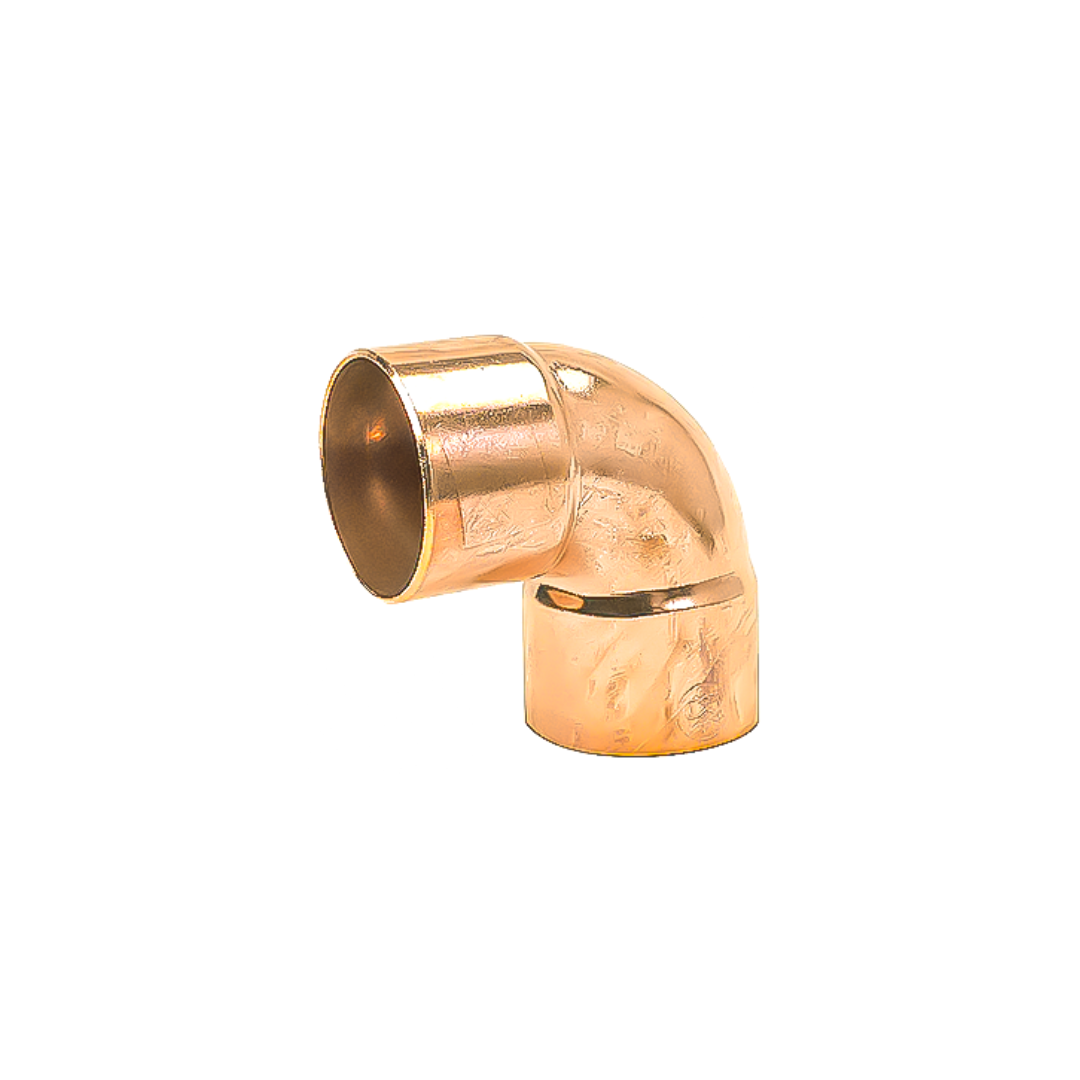 Codo de cobre soldable de 90° y diámetro 1 5/8″, diseñado para sistemas de refrigeración y aire acondicionado de media y alta capacidad. Permite cambios de dirección en la tubería de forma segura, garantizando una unión hermética y duradera.