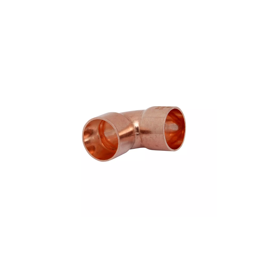 Codo de cobre soldable de 90° y 3/4", diseñado para realizar cambios de dirección en sistemas de tuberías de cobre. Ideal para instalaciones de refrigeración, aire acondicionado, gas y sistemas hidráulicos, garantiza una conexión segura, resistente y duradera mediante soldadura.