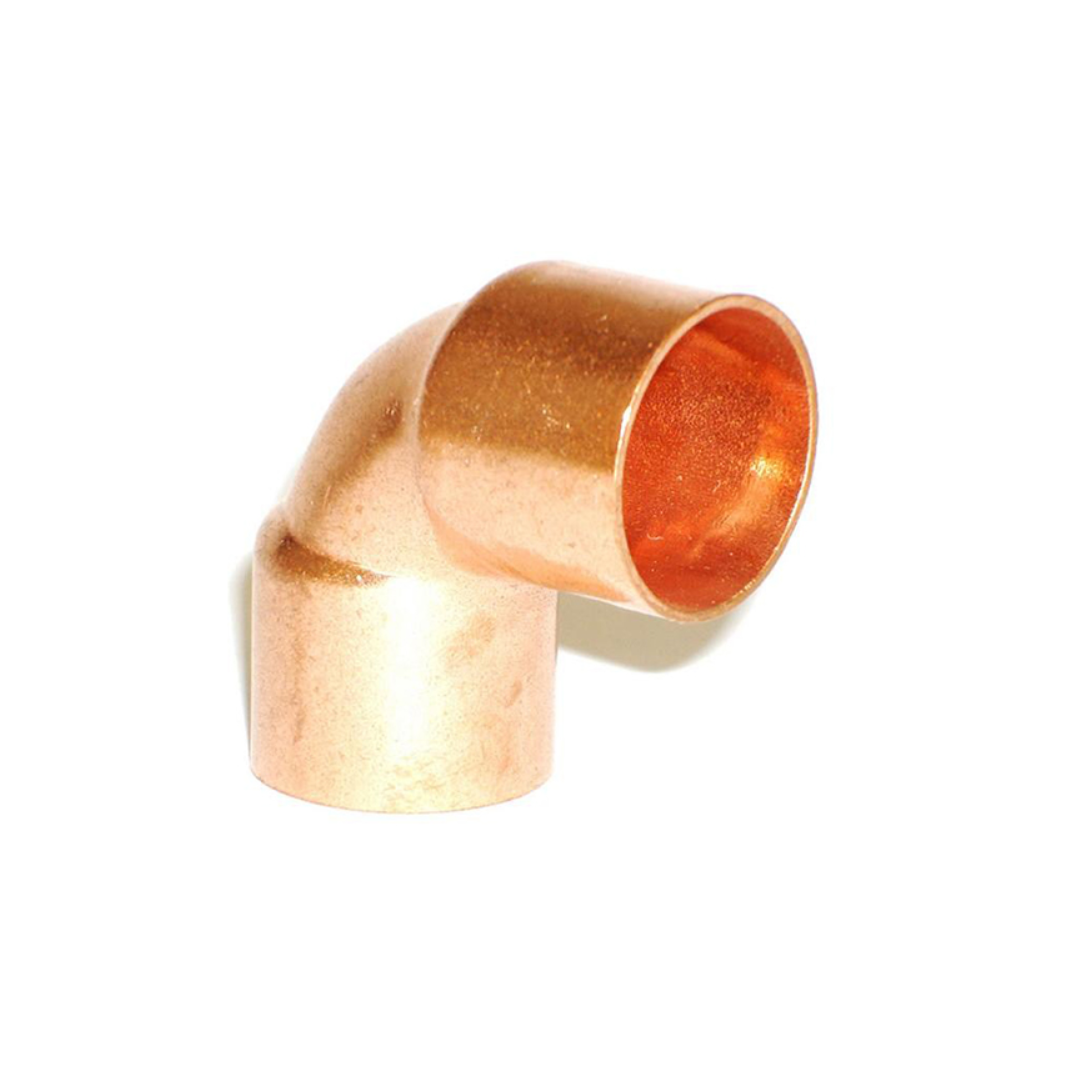 Codo de cobre soldable de 90° y diámetro 3/8″, diseñado para sistemas de refrigeración y aire acondicionado. Permite realizar cambios de dirección en la tubería de forma segura y eficiente, garantizando una unión resistente y hermética.