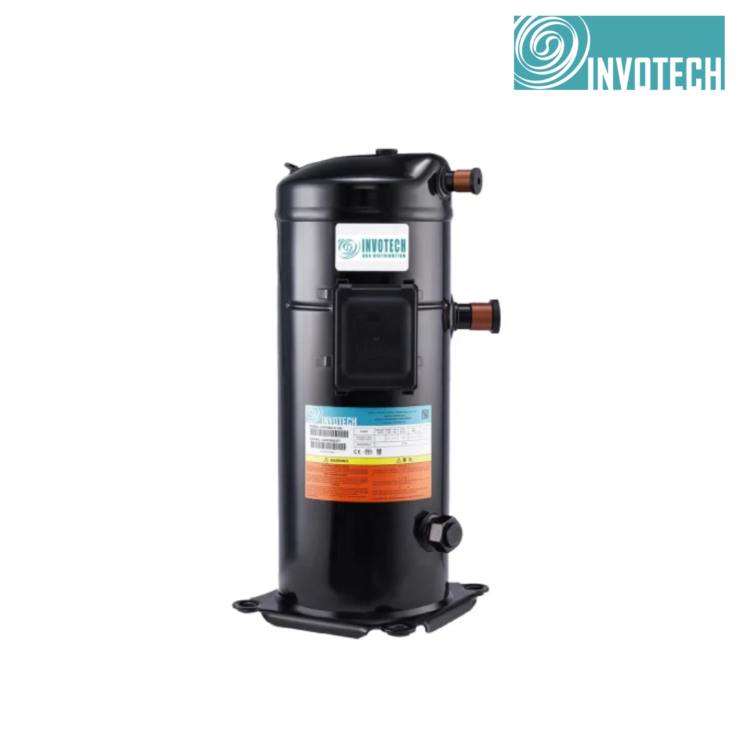 Compresor scroll INVOTECH modelo YH292C7-100, con capacidad de 120,000 BTU (10 HP), diseñado para sistemas de aire acondicionado y refrigeración que utilizan refrigerante R410A. Opera a 220V / 3 fases / 60 Hz, ofreciendo alta eficiencia, funcionamiento silencioso y confiabilidad para aplicaciones comerciales e industriales.