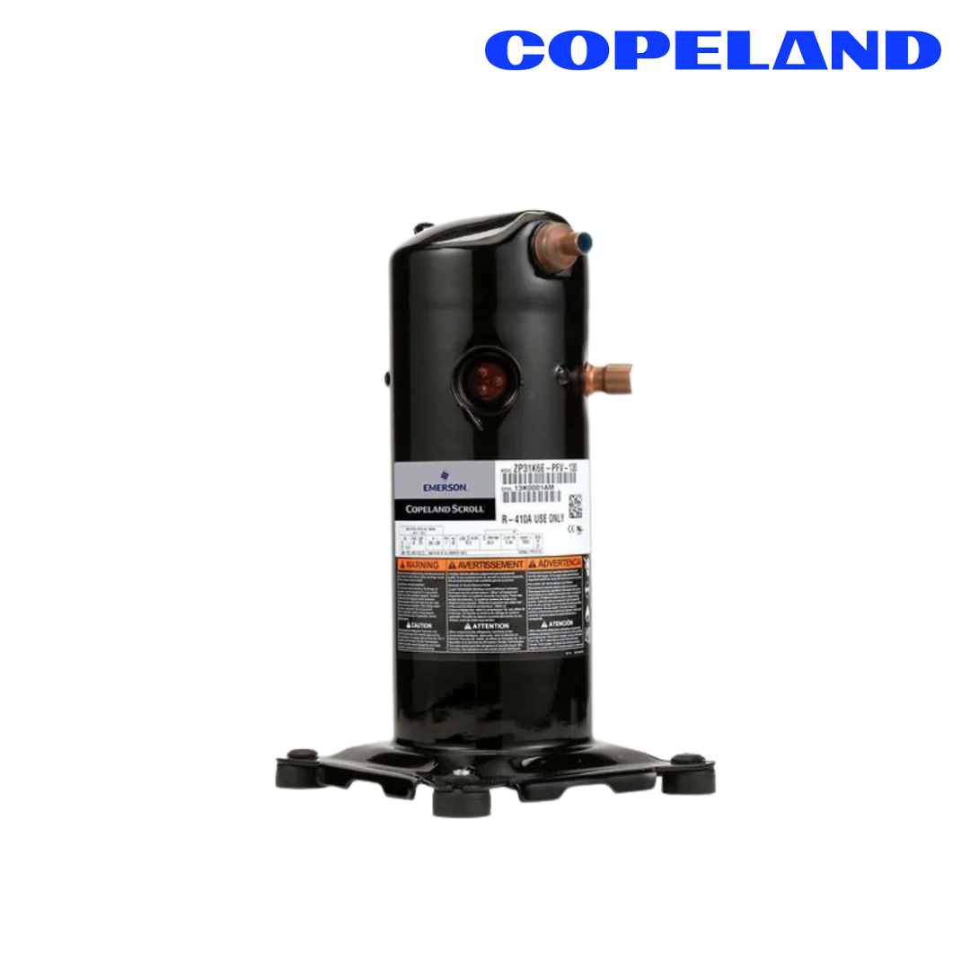 Compresor Scroll COPELAND ZP51KCE-TF5, diseñado para sistemas de aire acondicionado y refrigeración comercial que utilizan refrigerante R410A. Destaca por su alta eficiencia energética, funcionamiento silencioso y gran confiabilidad, siendo ideal para equipos de climatización de capacidad media.