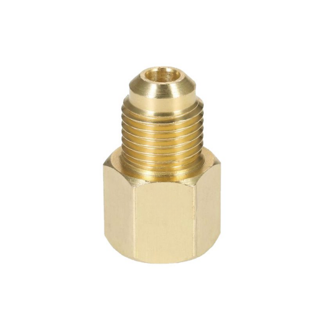 Conector de bronce modelo A-4622, con medida 1/4" x 1/8T, diseñado para la conexión segura de manómetros en sistemas de refrigeración, aire acondicionado y medición de presión. Fabricado en bronce, ofrece alta resistencia, durabilidad y un sellado confiable.