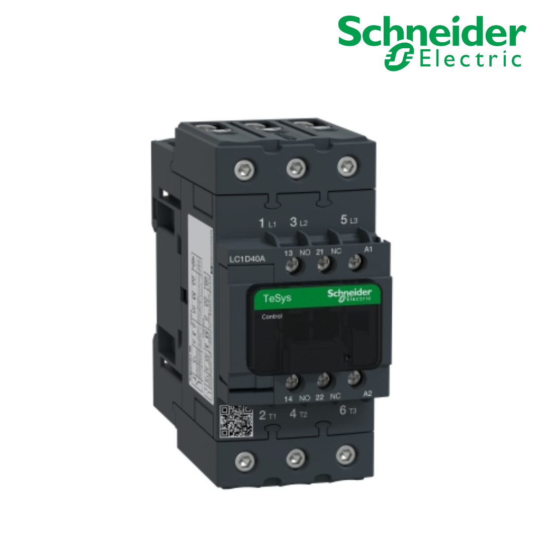 Contactor trifásico SCHNEIDER LC1D40AB7, diseñado para el control y maniobra de motores y cargas eléctricas en sistemas de refrigeración, aire acondicionado e instalaciones industriales. Ofrece operación confiable, alta durabilidad y excelente desempeño en aplicaciones de media y alta exigencia.