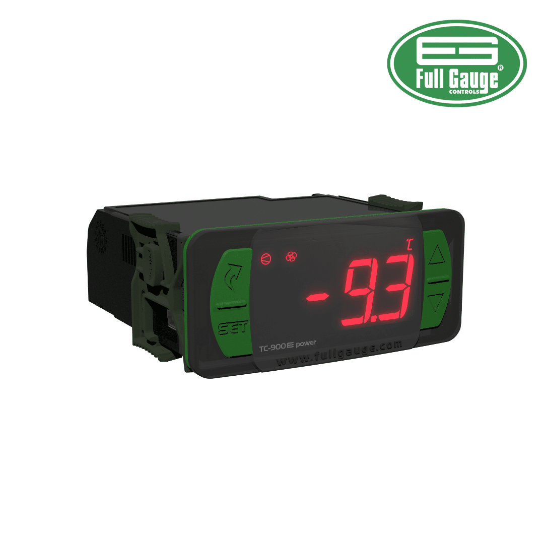 El TC-900E POWER es un controlador digital de temperatura desarrollado por Full Gauge especialmente para aplicaciones de congelamiento en cámaras frigoríficas. Ofrece funciones avanzadas como control de deshielo, ventiladores y alarmas. Su versatilidad permite operar con alimentación de 115V o 230V, lo que facilita su instalación en diversos entornos eléctricos.
