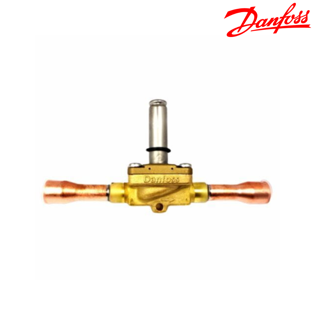 Cuerpo de válvula solenoide Danfoss EVR 10, código 032F1214, diseñado con conexión 5/8" soldable. Permite el control automático del flujo de refrigerante en sistemas de refrigeración y aire acondicionado, garantizando una instalación segura y de alta hermeticidad al utilizar la bobina correspondiente. Ideal para aplicaciones comerciales e industriales.