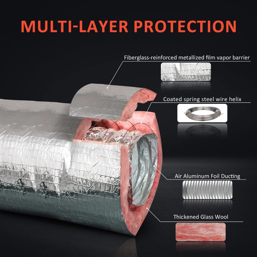 Ducto flexible aislado FACIL FLEX de 8 pulgadas de diámetro y 25 pies (7.62 m) de largo, diseñado para la distribución eficiente del aire en sistemas de ventilación, aire acondicionado y calefacción. Su aislamiento térmico ayuda a reducir pérdidas de energía y condensación, mejorando el desempeño del sistema HVAC. Ideal para instalaciones residenciales y comerciales gracias a su flexibilidad y fácil manejo.