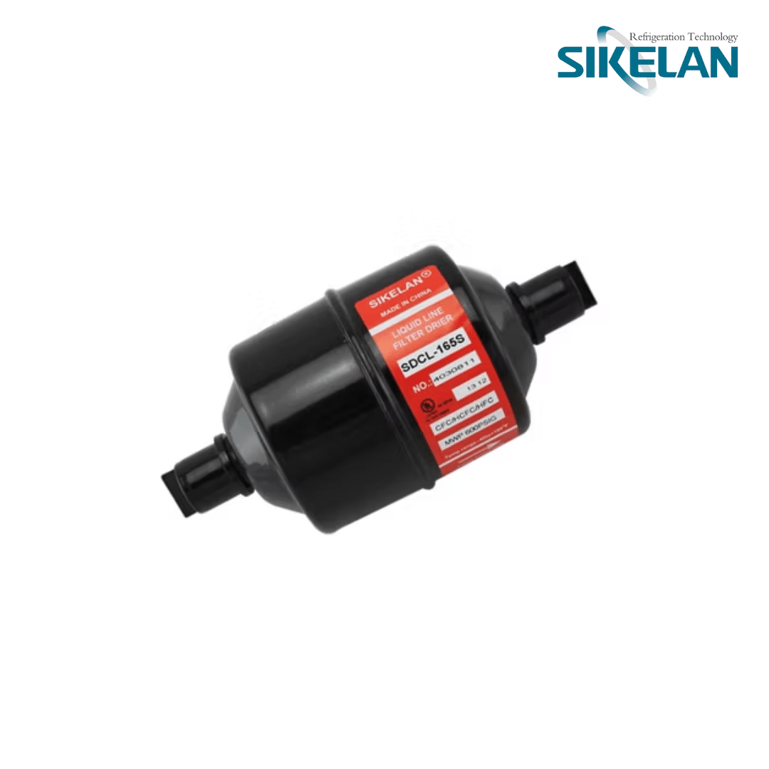 El filtro secador SDCL-165S de Sikelan forma parte de la reconocida serie SDCL, diseñada con un núcleo sólido de alta capacidad de absorción que combina tamiz molecular y alúmina activa. Este componente esencial elimina de manera eficiente la humedad, ácidos y contaminantes del sistema de refrigeración o aire acondicionado, garantizando un flujo de refrigerante limpio y estable, y una mayor durabilidad de los componentes del sistema.