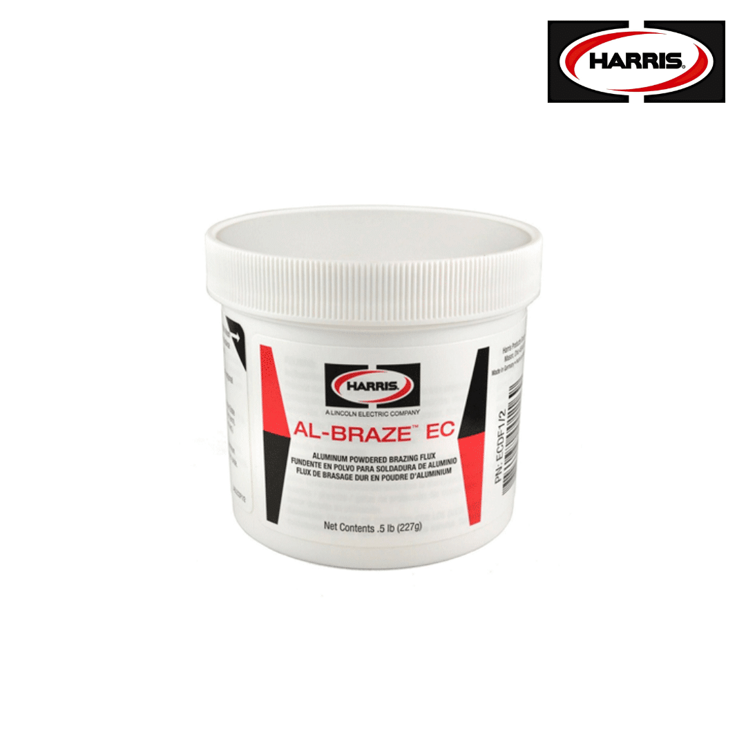 El fundente en polvo AL-BRAZE EC de Harris está especialmente formulado para procesos de soldadura fuerte (brazing) de aluminio y sus aleaciones. Con una presentación de 227 gramos (8 oz), este fundente permite una adecuada limpieza y humectación, favoreciendo uniones fuertes, sin porosidad y resistentes a la corrosión.