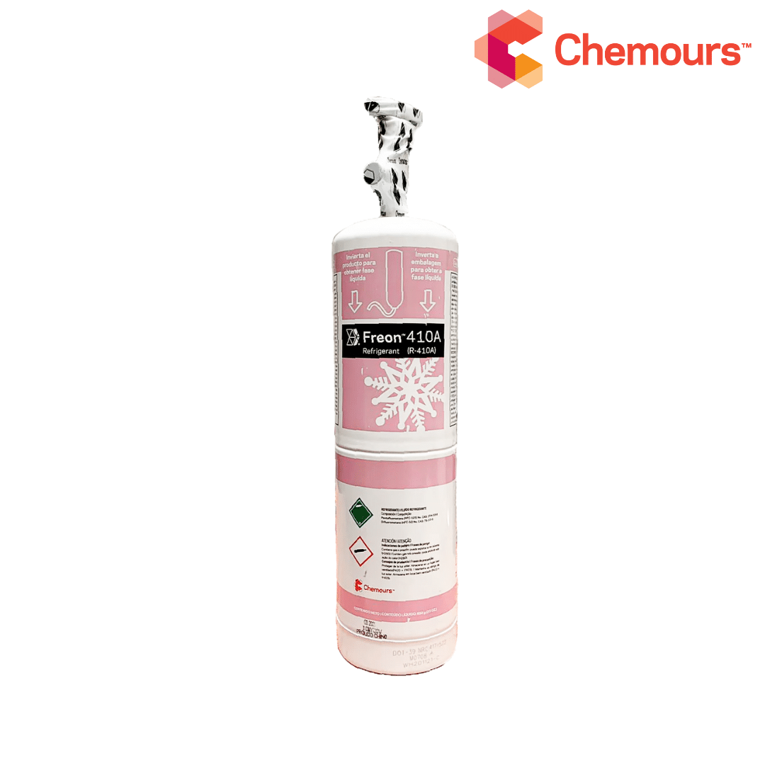 El refrigerante Freon™ 410A (R-410A) ofrece una mayor capacidad de enfriamiento y una presión significativamente mayor que el R-22 para su uso en sistemas diseñados específicamente para R-410A. Este refrigerante de hidrofluorocarbono (HFC) es compatible con aceites de poliolefina (POE) y reemplaza al R-22 en sistemas de aire acondicionado (AC) de desplazamiento positivo y de bomba de calor para uso residencial y comercial ligero.