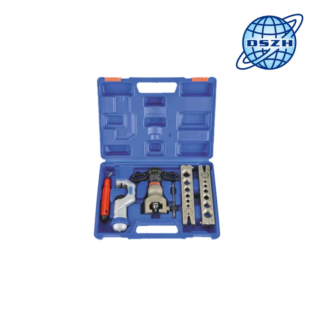 Juego de expansores excéntrico y abocardador DSZH modelo WK-R806FT-L, diseñado para trabajos profesionales en tuberías de cobre utilizadas en sistemas de refrigeración y aire acondicionado. Permite expandir y abocardar tubos desde 1/4" hasta 3/4", garantizando uniones precisas, seguras y de alta calidad.