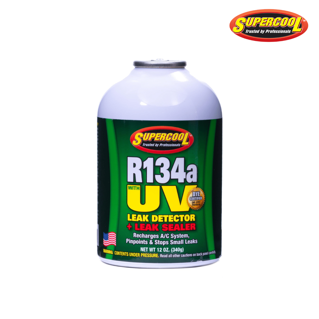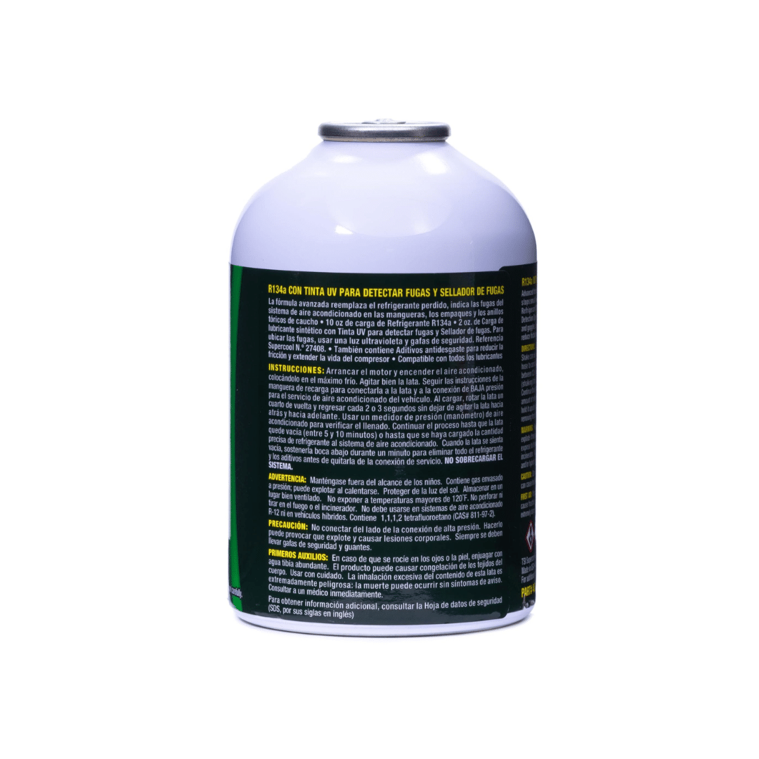 - Contiene 10 oz. Refrigerante R134a y lubricante sintético de 2 oz con tinte de detección de fugas UV y sellador de fugas seguro para el sistema.