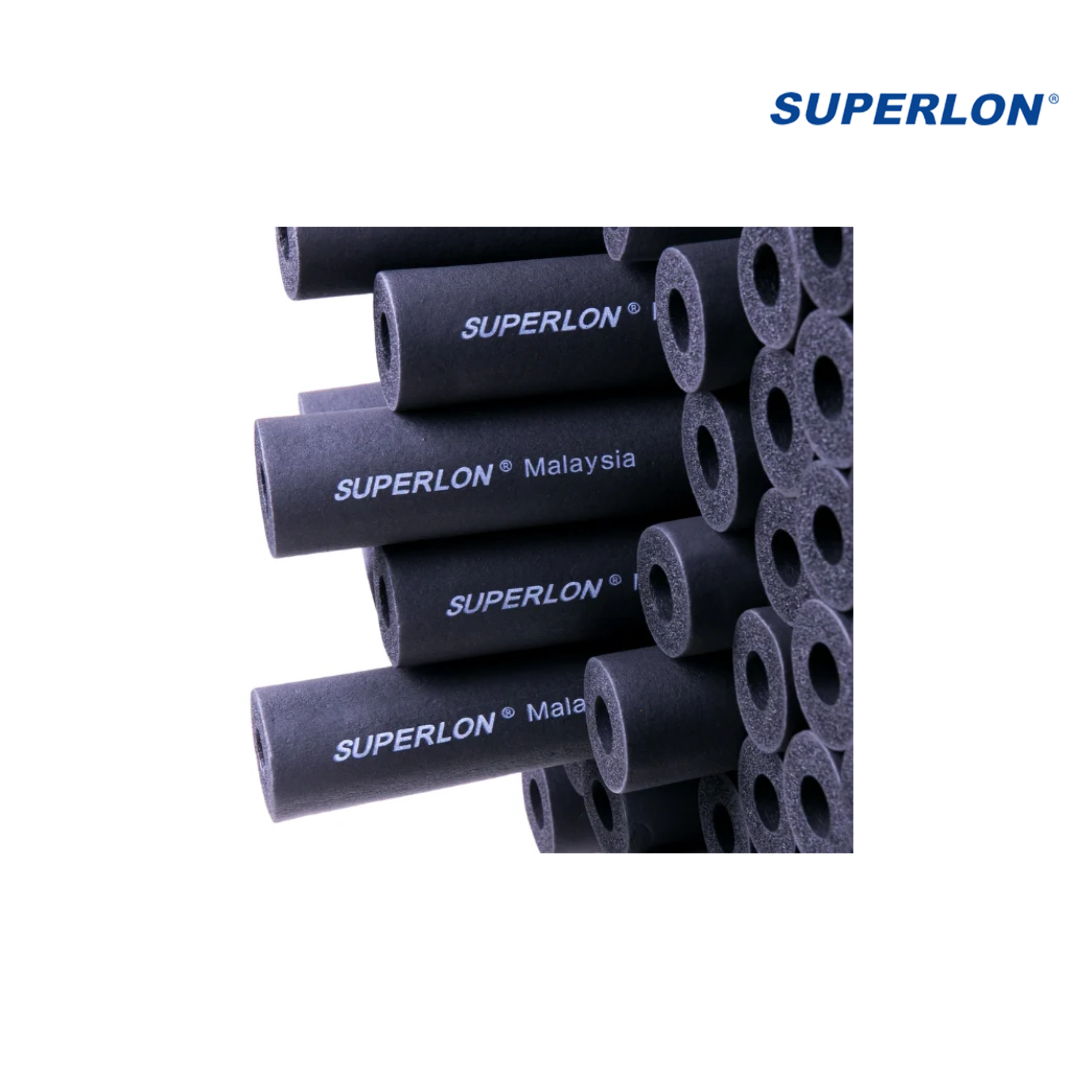Manguera de aislamiento SUPERLON diseñada para tuberías de 1 3/8", con espesor de 3/4" y longitud de 1.80 metros. Ideal para sistemas de refrigeración y aire acondicionado, reduce pérdidas térmicas, evita condensación y mejora la eficiencia energética del sistema.