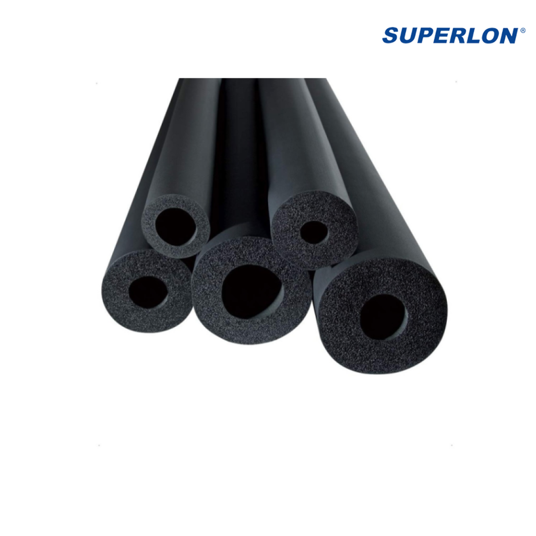 Manguera de aislamiento térmico Superlon, elaborada en espuma elastomérica de alta calidad, diseñada para reducir pérdidas de energía y prevenir la condensación en tuberías de sistemas de refrigeración y aire acondicionado. Ofrece un aislamiento eficiente, flexible y duradero para instalaciones profesionales.