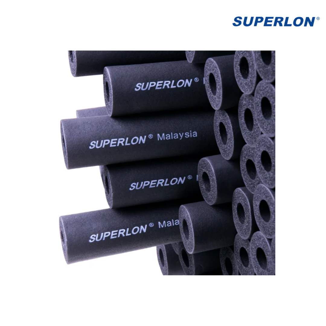 Manguera de aislamiento térmico Superlon, fabricada en espuma elastomérica de alta calidad, diseñada para reducir las pérdidas de energía y prevenir la condensación en tuberías de sistemas de refrigeración y aire acondicionado. Brinda un aislamiento eficiente, flexible y duradero para aplicaciones profesionales.