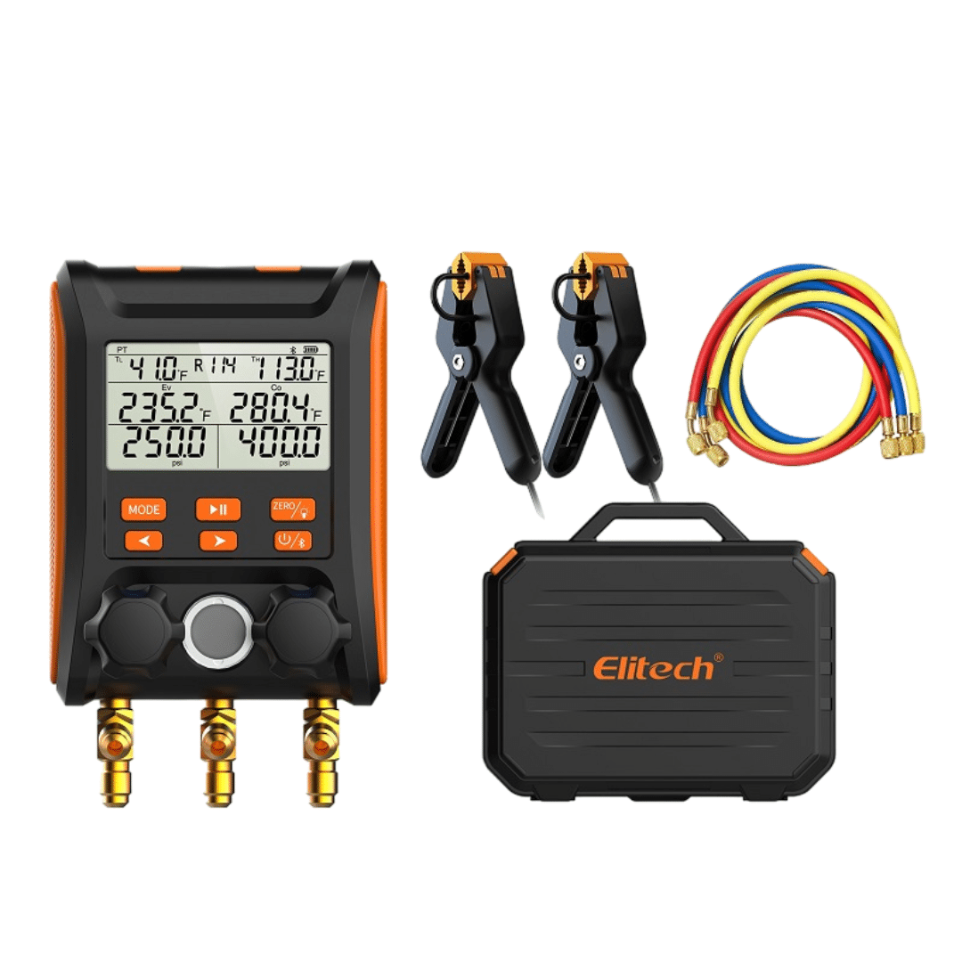 Elitech MS-1000S es un manómetro digital profesional que combina funcionalidad completa, compatibilidad con 88 refrigerantes y máxima seguridad, ofreciéndote una opción confiable y asequible para realizar pruebas de vacío y recarga en sistemas HVAC.
