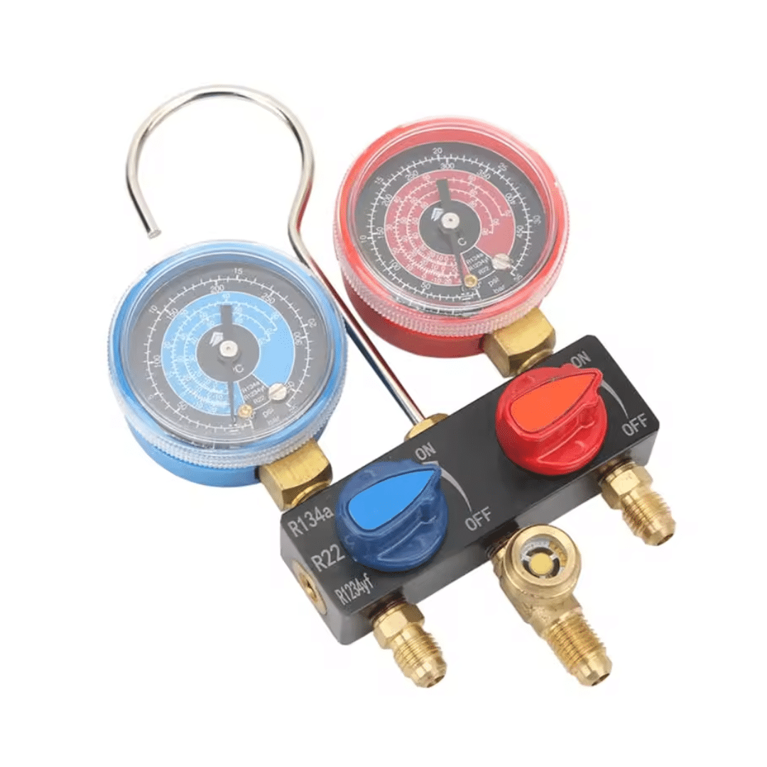El manifold analógico Hongsen modelo HS-M01 está diseñado para el diagnóstico y mantenimiento de sistemas de refrigeración y aire acondicionado. Su compatibilidad con refrigerantes R1234yf, R22 y R134a lo convierte en una herramienta práctica y versátil para trabajos de servicio técnico.