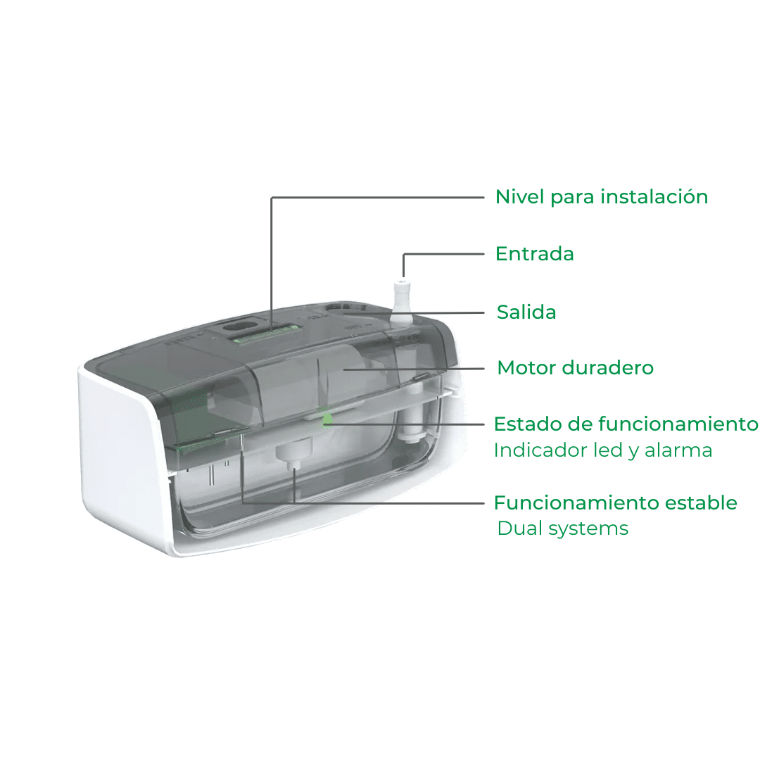 Sensor de nivel integrado, para activación automática sin intervención manual.