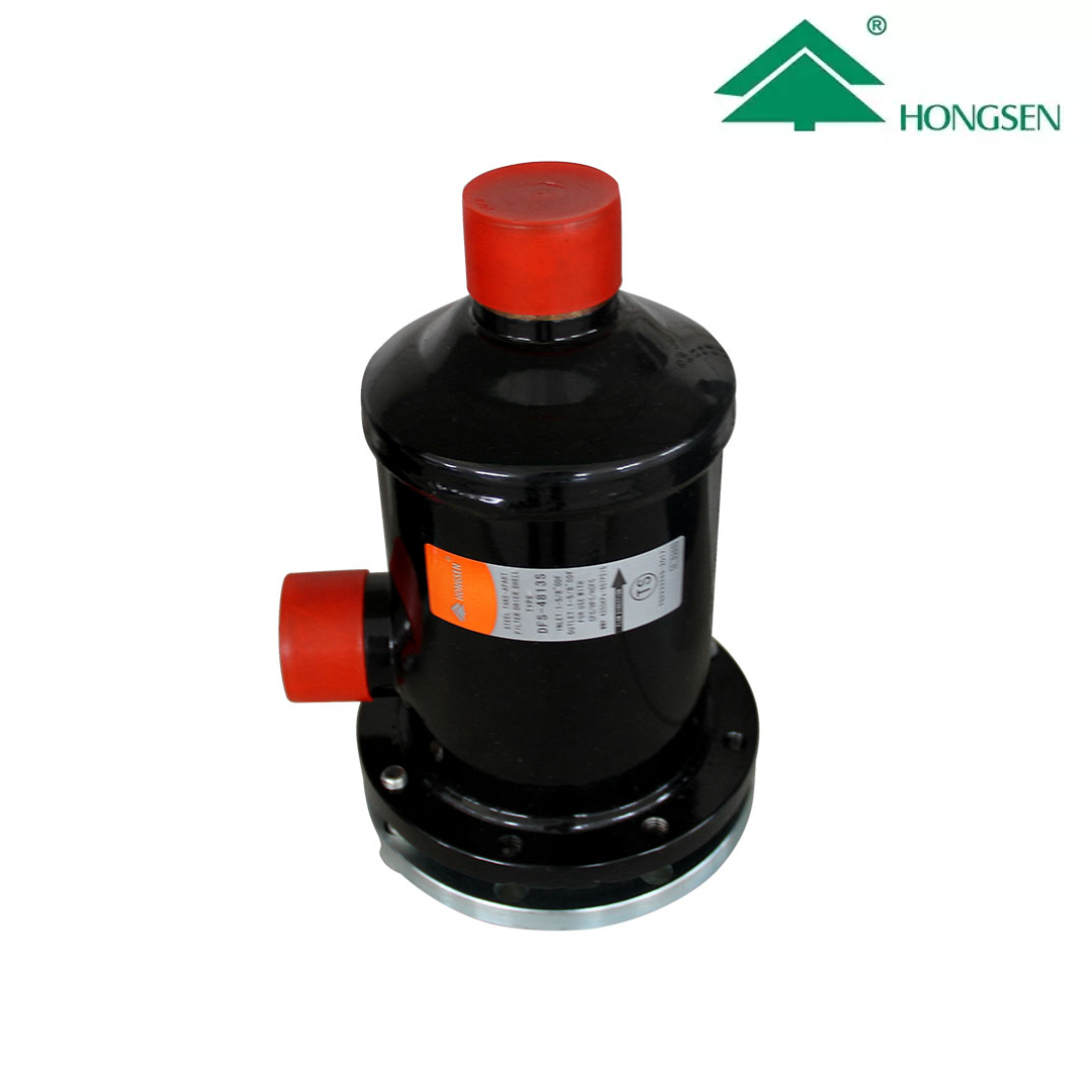 Porta filtro modelo DFS-4813S de HGS, diseñado para alojar 1 núcleo filtrante en sistemas de refrigeración y aire acondicionado. Permite una filtración eficiente del refrigerante, ayudando a retener humedad y partículas contaminantes que pueden afectar el rendimiento y la vida útil del sistema.