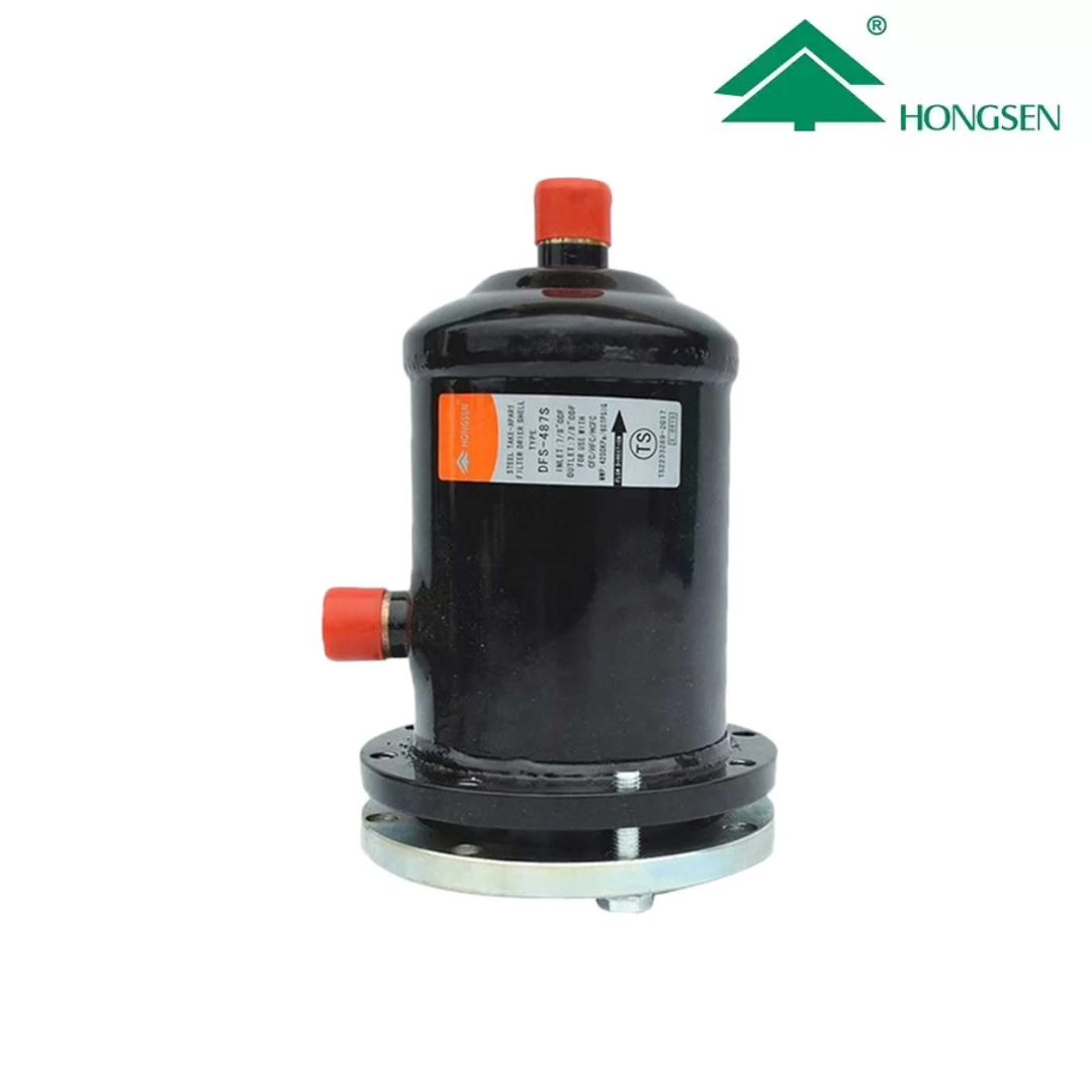 Porta filtro modelo DFS-487S de HGS, diseñado para alojar 1 núcleo filtrante en sistemas de refrigeración y aire acondicionado. Permite una filtración eficiente del refrigerante, ayudando a retener humedad y partículas contaminantes que pueden afectar el rendimiento del sistema.