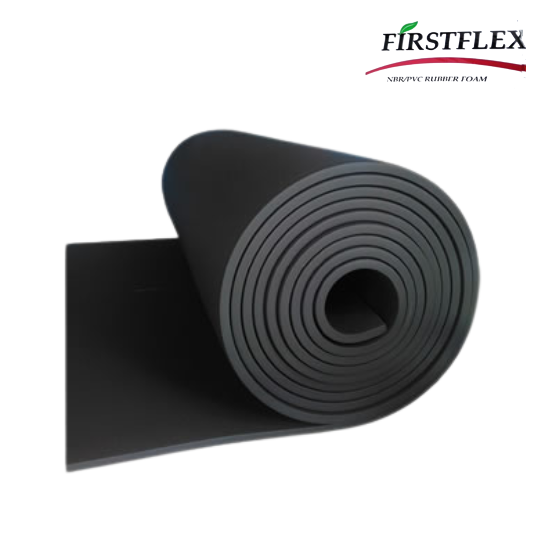 Rollo de espuma elastomerica flexible FIRSTFLEX, diseñado para el aislamiento térmico y acústico de sistemas de refrigeración, aire acondicionado y climatización. Reduce la condensación, evita pérdidas de energía y mejora la eficiencia del sistema en aplicaciones comerciales e industriales.