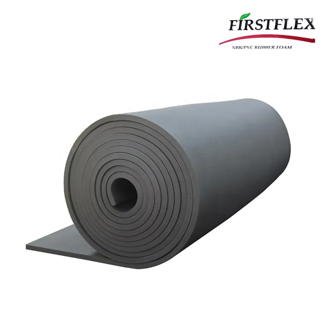Rollo de espuma elastomerica flexible FIRSTFLEX, ideal para el aislamiento térmico y control de condensación en sistemas de refrigeración, aire acondicionado y HVAC. Su mayor espesor proporciona un mejor desempeño térmico, reduciendo pérdidas de energía en aplicaciones comerciales e industriales.