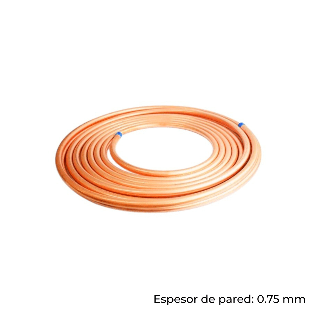 El rollo de tubería de cobre flexible con espesor de 0.75 mm y longitud de 15 metros es ideal para instalaciones que requieren mayor resistencia a la presión y excelente maleabilidad, como sistemas de refrigeración, aire acondicionado (HVAC-R), calefacción y distribución de gases. Su diseño flexible permite una instalación rápida, segura y sin necesidad de múltiples uniones, incluso en espacios reducidos.