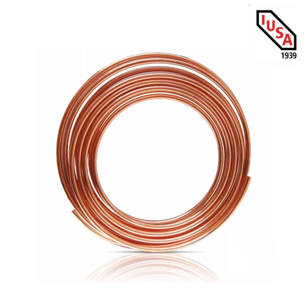 Rollo de tubería flexible de cobre IUSA, diseñado para instalaciones de refrigeración y aire acondicionado. Fabricado con cobre de alta pureza, ofrece excelente flexibilidad, resistencia y durabilidad, ideal para líneas de refrigerante en sistemas HVAC/R.