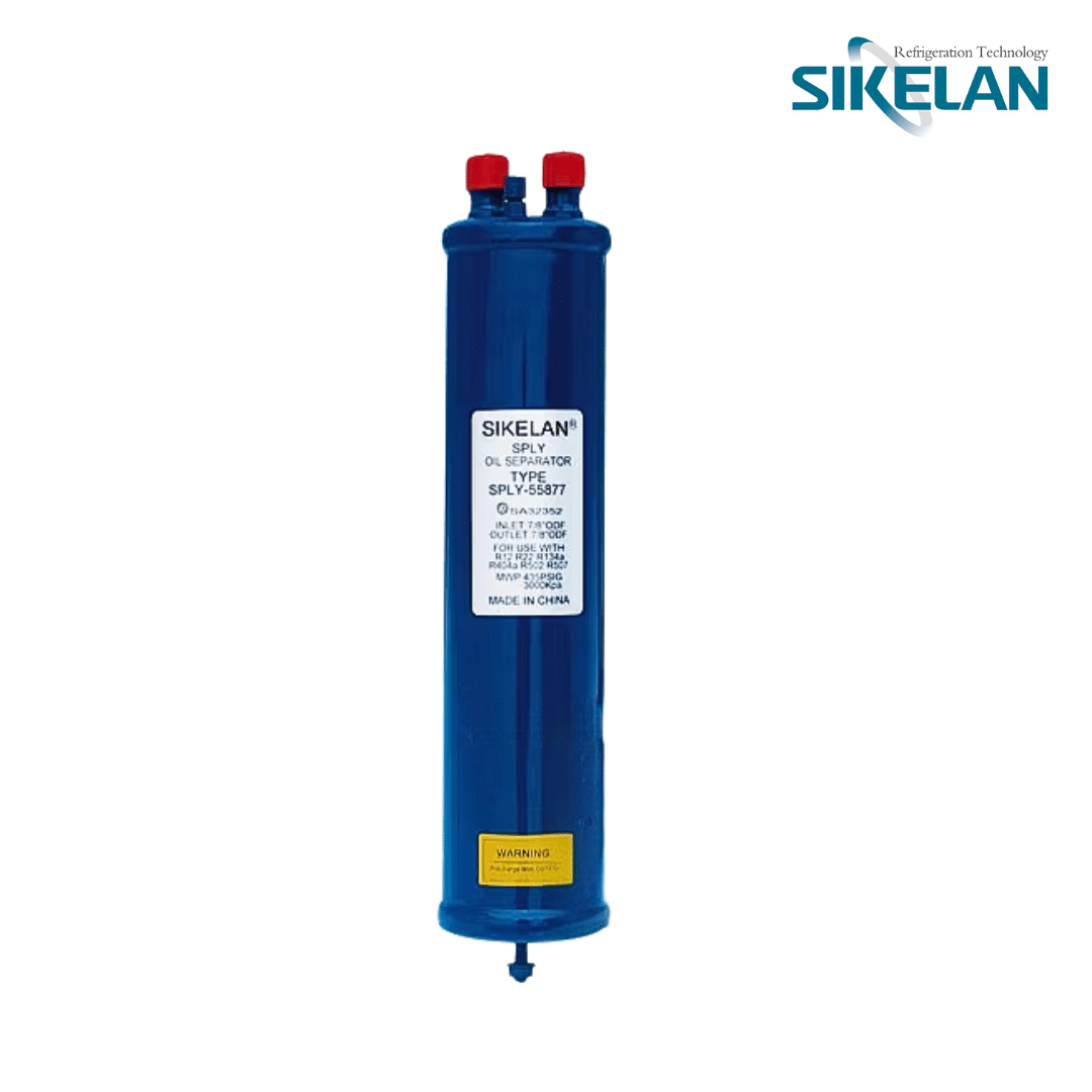 El separador de aceite SPLY-55877 de Sikelan está diseñado para retener y devolver el aceite lubricante al compresor, evitando que circule por el sistema de refrigeración. Esto mejora la eficiencia del ciclo frigorífico, reduce el consumo de aceite y prolonga la vida útil del compresor. Fabricado con materiales de alta calidad, garantiza un rendimiento confiable en sistemas de refrigeración y aire acondicionado comercial o industrial.