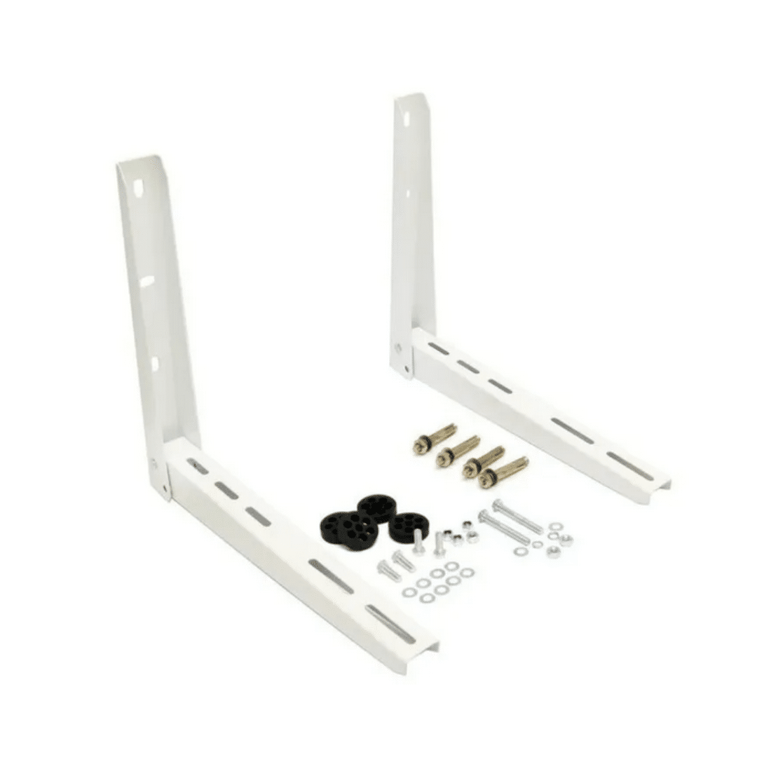 Soporte metálico resistente diseñado para la instalación segura de unidades condensadoras de aire acondicionado con capacidad entre 12,000 y 18,000 BTU. Fabricado con acero de alta resistencia y acabado anticorrosivo para mayor durabilidad en exteriores.
