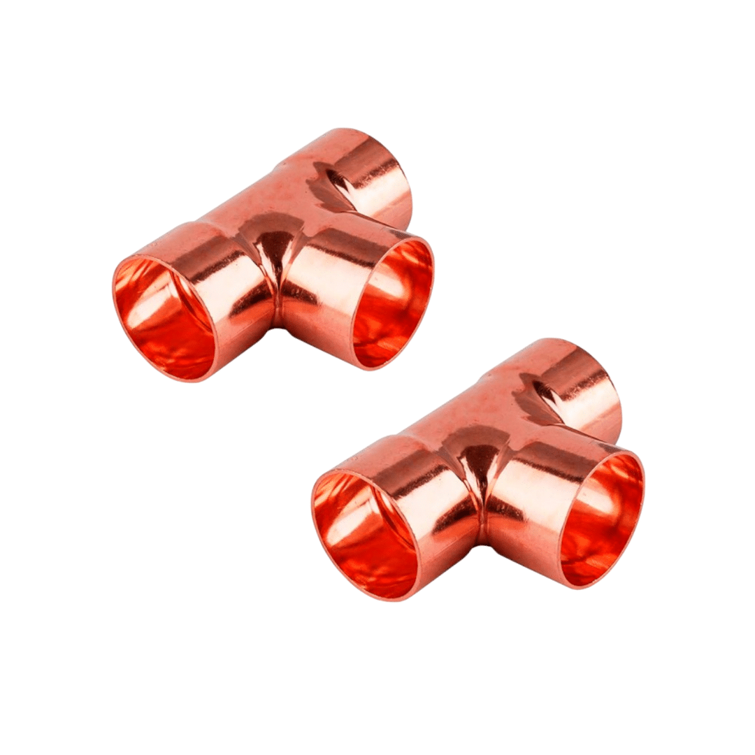 La tee de cobre soldable es una conexión fundamental para dividir o unir líneas de tuberías en instalaciones de refrigeración, aire acondicionado (HVAC-R), agua y gas. Su diseño en forma de “T” permite una derivación precisa del flujo, y su fabricación en cobre 100% puro garantiza una excelente conductividad, resistencia a la presión y a la corrosión.