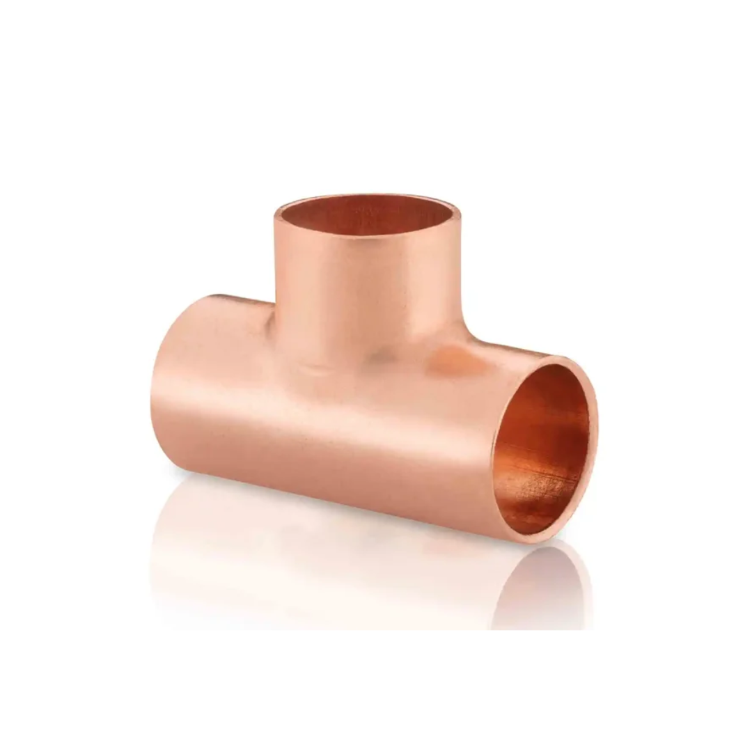Tee de cobre soldable de 5/8", utilizada para realizar derivaciones en sistemas de refrigeración, aire acondicionado y aplicaciones hidráulicas. Fabricada en cobre de alta calidad, asegura excelente conductividad térmica, resistencia a la corrosión y uniones firmes mediante soldadura.