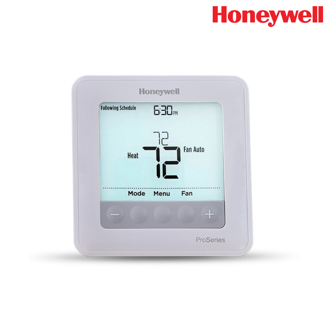 Termostato digital programable HONEYWELL T6 Pro Multietapa, diseñado para el control preciso de temperatura en sistemas de calefacción y aire acondicionado. Permite programación flexible y control multietapa, optimizando el confort y la eficiencia energética en aplicaciones residenciales y comerciales.