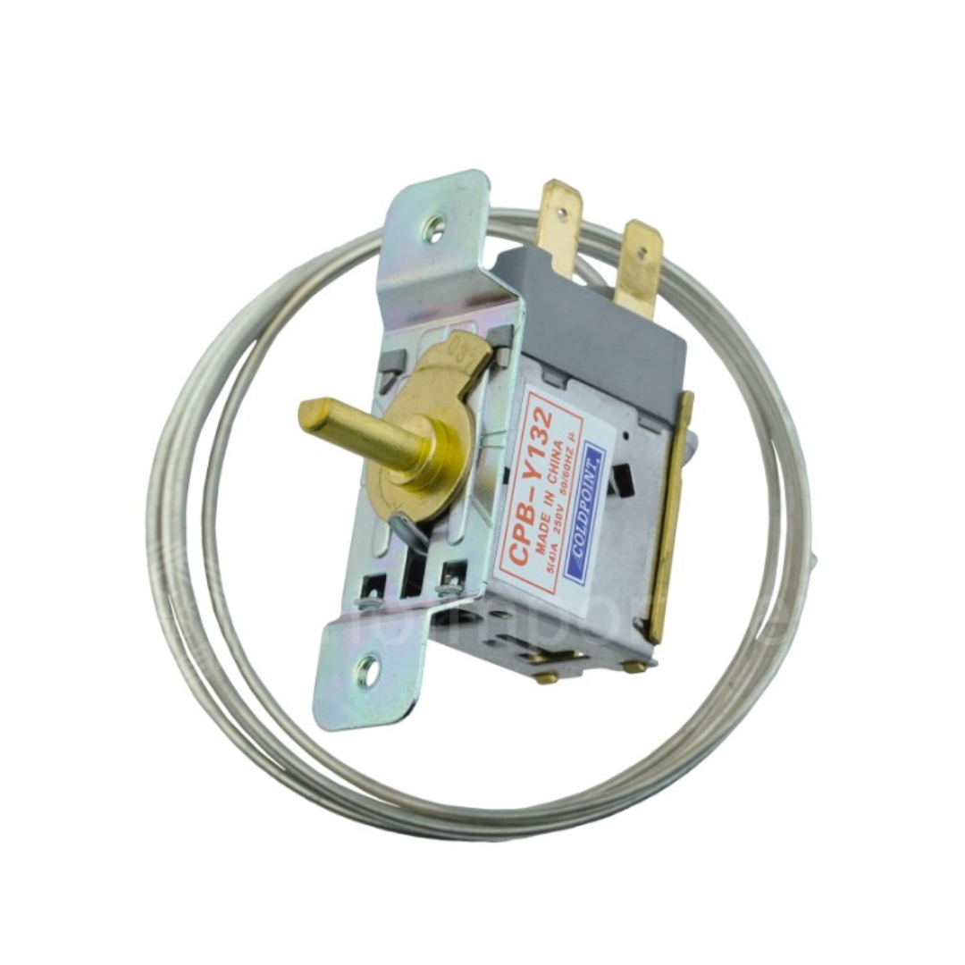 Este termostato mecánico tipo “CPB-Y132” de ColdPoint está diseñado para controlar la temperatura en refrigeradores domésticos o cámaras de conservación. Permite mantener un rango de temperatura adecuado para conservar alimentos fríos, actuando como regulador del compresor.