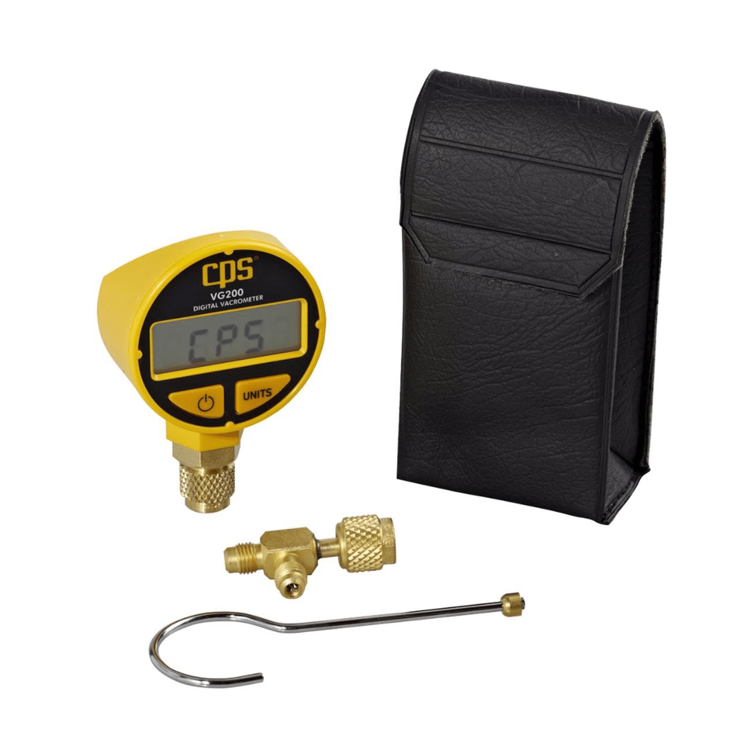 Monitorea los procedimientos de evacuación de principio a fin. Gracias a los estrictos estándares NIST y a las continuas pruebas de calibración, el vacuómetro digital VG200 se ha ganado la reputación de ser el mejor de su clase por su precisión y fiabilidad. Disfrute de la flexibilidad de seleccionar o cambiar las unidades con solo dos botones en el vacuómetro digital: MICRAS , MILIBAR , TORR y PULGADAS/HG , rápidamente durante cualquier procedimiento. El vacuómetro digital también compensa automáticamente las variaciones de temperatura, sin necesidad de ajustes manuales.