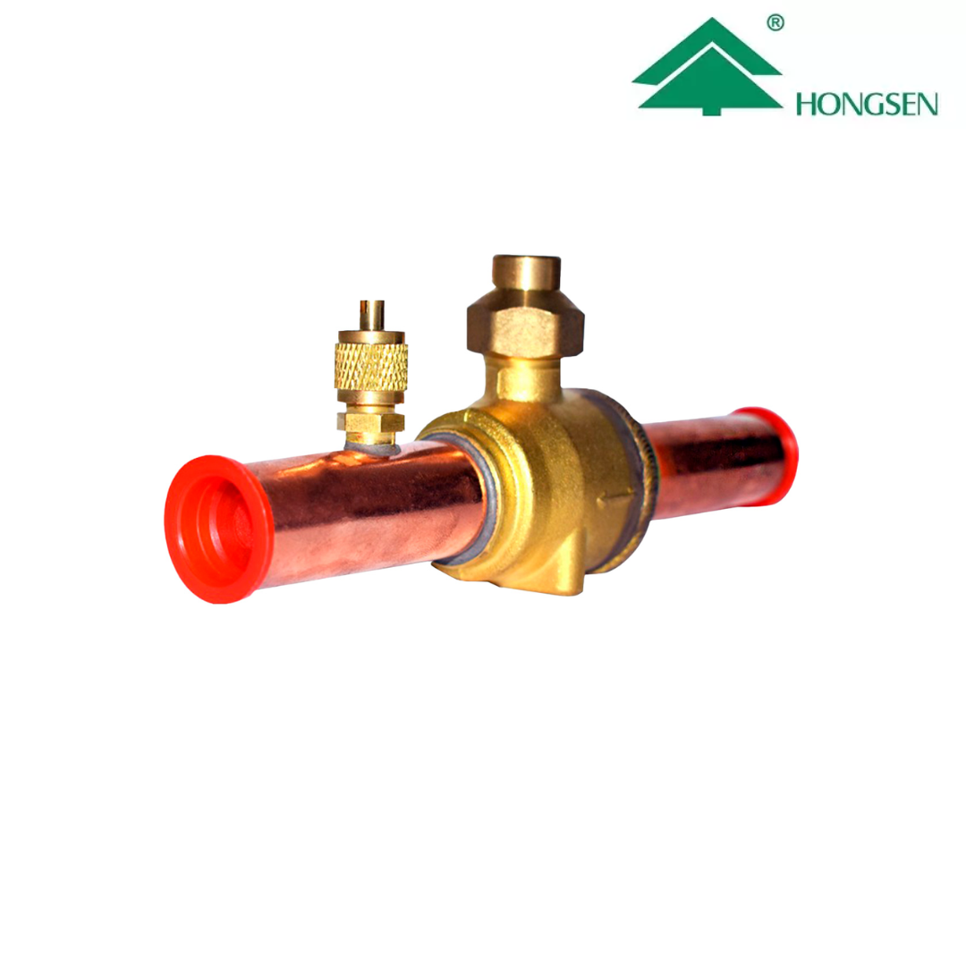 Válvula de bola con servicio HBC-67 de 2 5/8″, marca HONGSEN, diseñada para sistemas de refrigeración y aire acondicionado de alta capacidad. Permite un control seguro del flujo del refrigerante y facilita las tareas de mantenimiento, carga y recuperación del sistema.