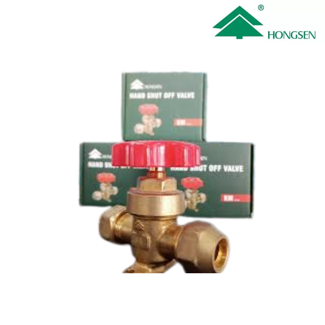 Válvula de paso modelo KM-5/8 SAE de Hongsen, diseñada para abrir o cerrar el flujo de refrigerante en sistemas de refrigeración y aire acondicionado. Permite un control seguro y preciso del circuito, facilitando las labores de instalación, mantenimiento y servicio técnico.