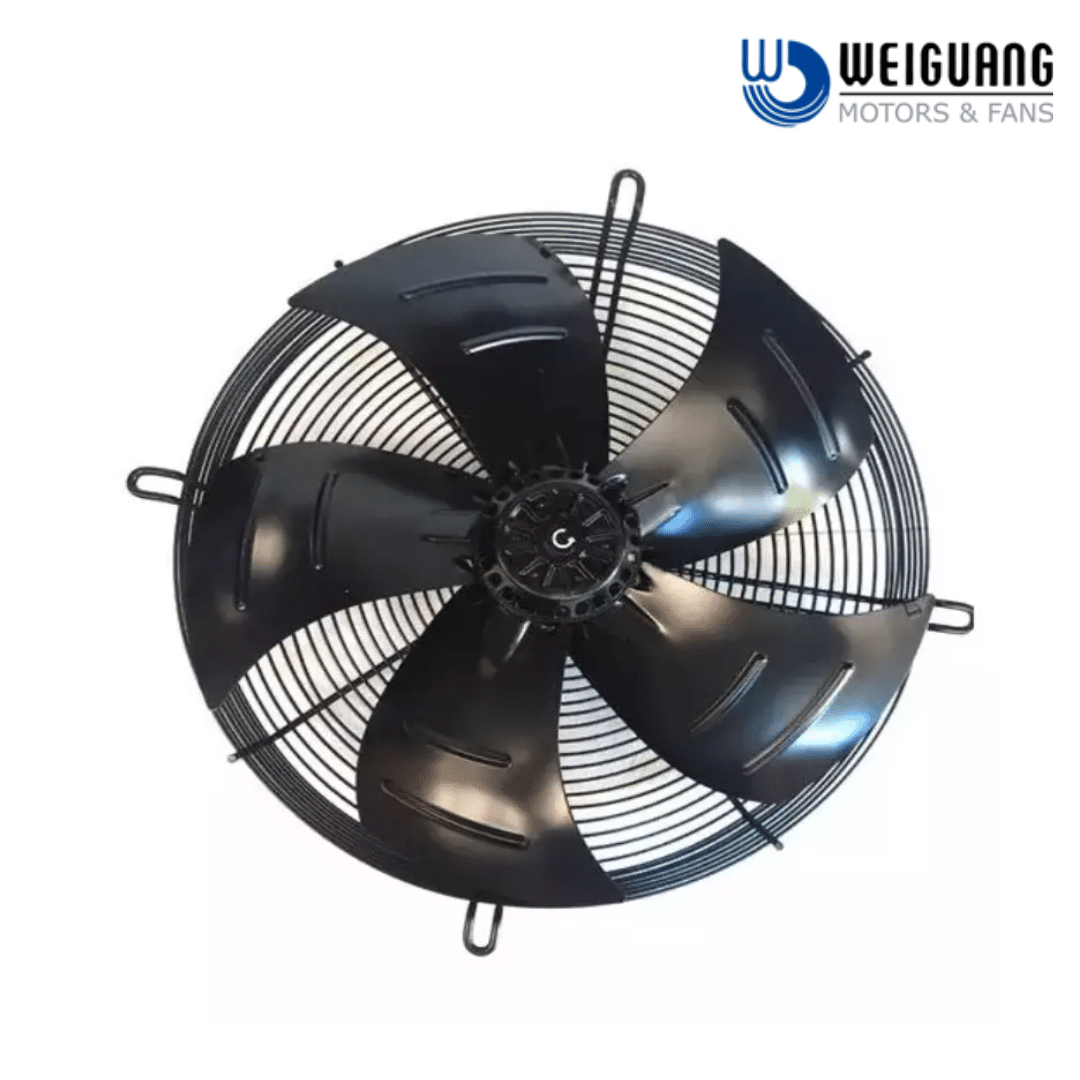 Ventilador axial Weiguang de 450mm, trifásico (220/380/440V), diseñado para alto rendimiento en sistemas de refrigeración comercial e industrial. Su motor robusto y su hélice de alta eficiencia garantizan un flujo de aire superior, ideal para condensadoras, evaporadoras y equipos de ventilación de gran capacidad.